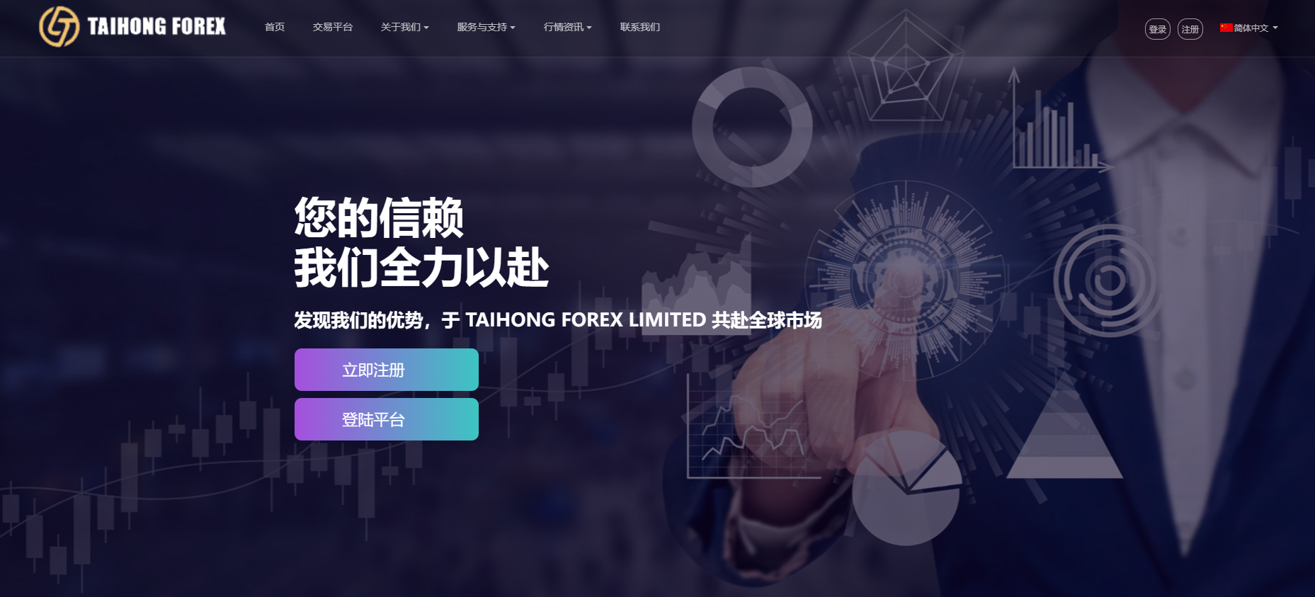 你们就是我司支撑下去的信心。我司刚成立时也有困难时期,是有不断的新老用户的不离不弃,才能让我司度过难关。为此我司也给出,凡是在我司交易外汇的投资交易者基础点差低至0极致交易成本。您的信赖,我们全力以赴发现我们的优势,在TAI HONG FOREX LIMITED一起共赴全球市场。接触世界顶流交易商,大单成交在最好的价格!